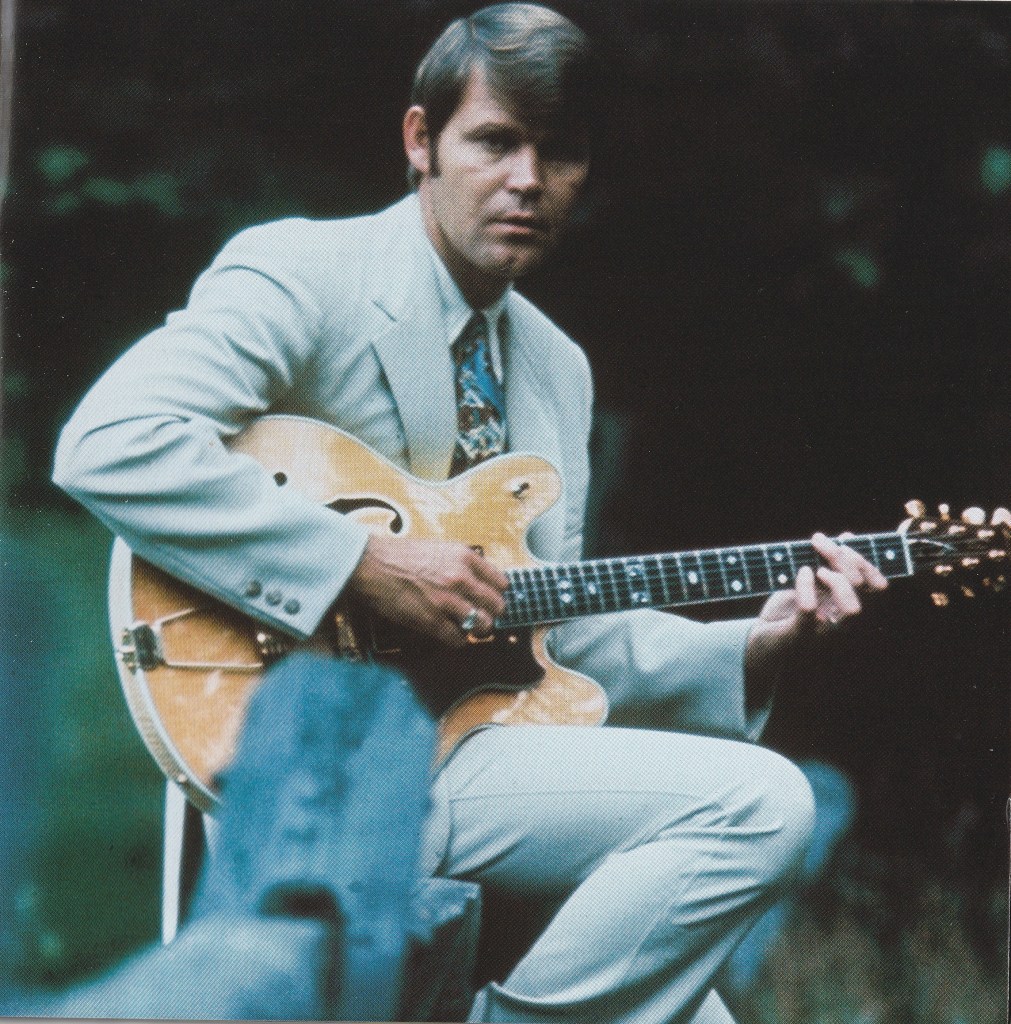 Determined to pursue his love of music, he quits school at 14 and heads to Houston where an older brother works, and after playing for a while with Uncle Boo he joins up with a band heading out on a tour of the South-West. The move proves to be a false start when he’s found to be too young for the venues they play and so Campbell has to head home, his first attempt at making his way as a musician ending in failure. With the help of another uncle in Alberqueque he makes a fresh start and forms his own band, Glen Campbell and The Western Wranglers, at the same time becoming a star on local TV and radio. He also gets married for the first time, to “the sparkling-eyed, vivacious” Diane Kirk, but his growing popularity and the couple’s decision to marry young bring an early end to their relationship. Three years later, he marries again to Billie Jean Nunley and the couple move to Hollywood where Glen hopes to further his career. He spends eight months touring with The Champs (of ‘Tequila’ fame), while also making demonstration records for other singers and – crucially – gaining a reputation as a session guitarist; one who doesn’t read music, but who can pick up a melody and song structure after hearing it once.